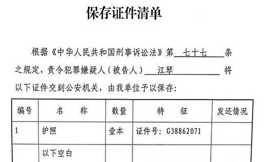 江琴于4月4日释放后被强行取保候审,办案警察又以保存为由扣留了她的美国护照。致使江琴无法返美与丈夫团聚。