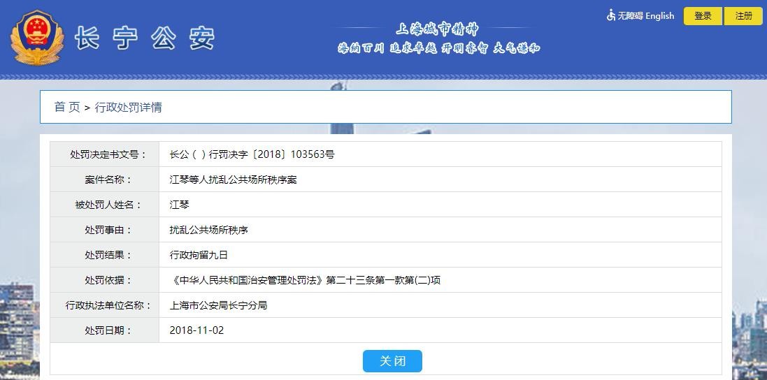 上海市公安局长宁分局网站系统查询显示没有江琴信息?(截图)