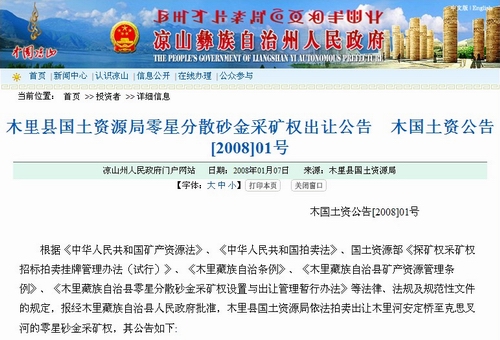图:木里县国土局以木国土资公告【2008】01号(来源:凉山州政府网站截图)