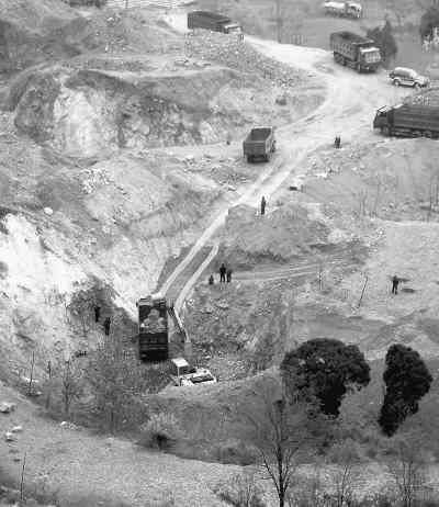 该市银洞山一大型非法采矿点车来车往,干得正起劲。