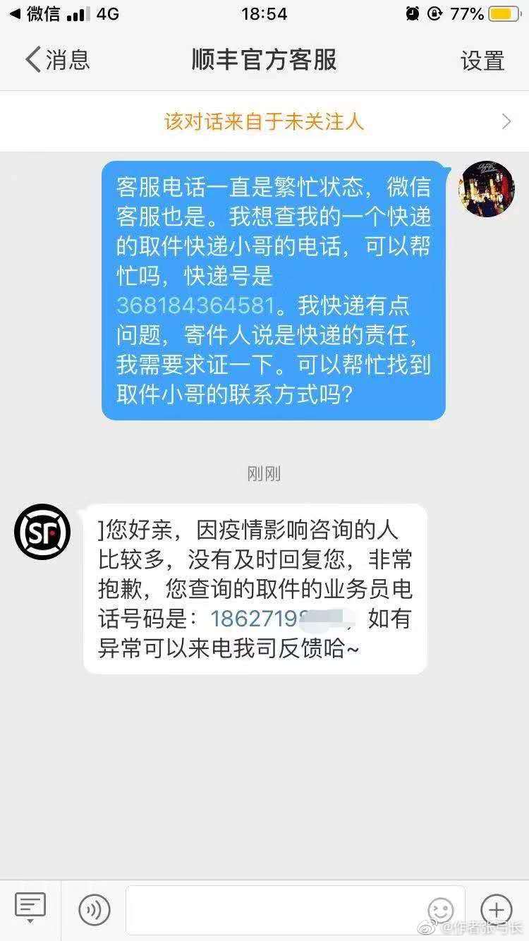 收货人查询发现寄件人“查无此人”。(图片来源于微博截图)